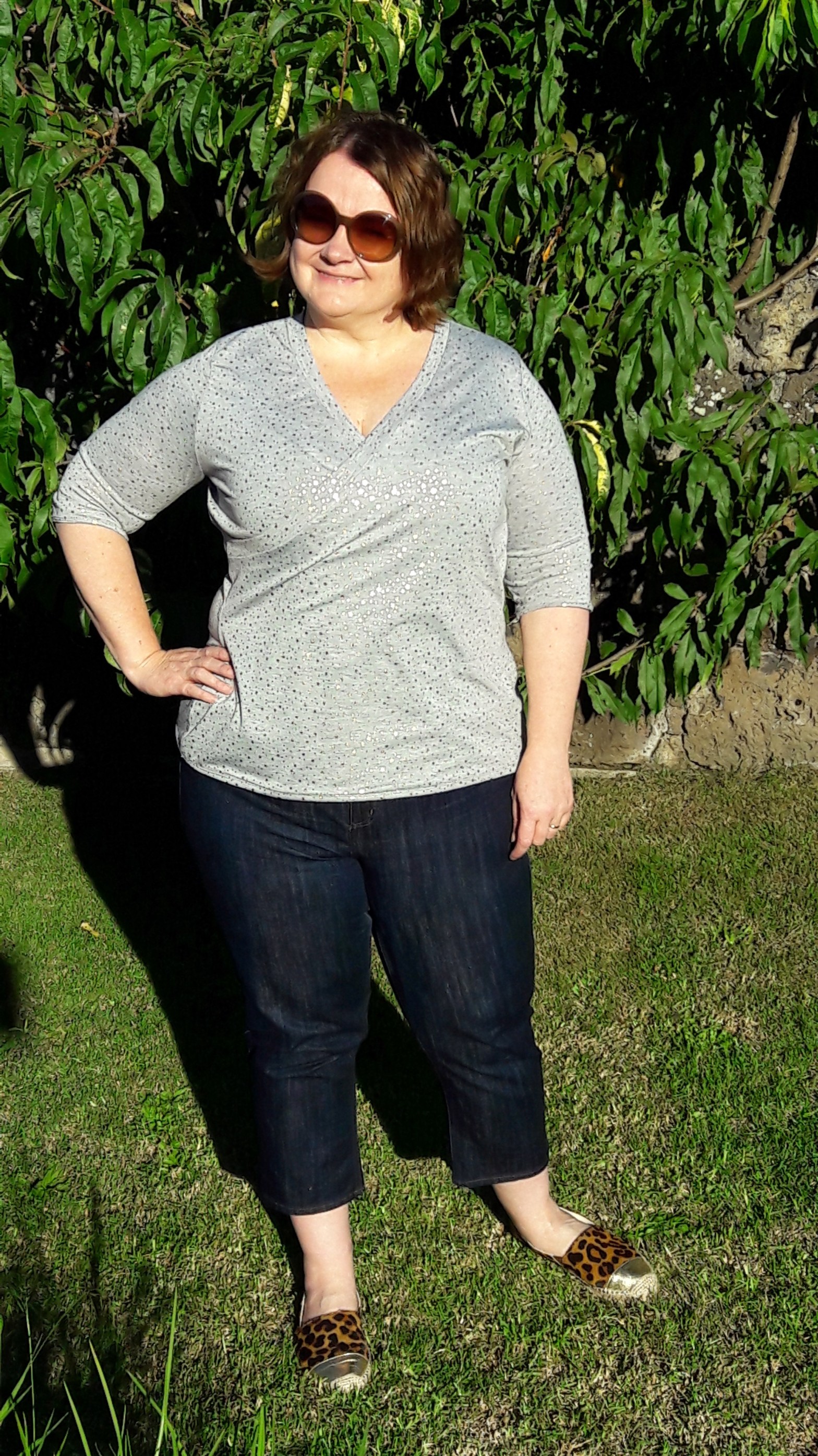 When I saw Cashmerette’s latest pattern Dartmouth, a stylish crossover knit top with three sleeve options, I knew I needed to get back on the knit wagon. I’ve had two previous attempts and made a complete mess of both, mainly due to bad fabric choices. Confident the Liberty would be gorgeous, but less confident in my ability not to make a complete Horlicks of the whole sew I turned to some cheap but cute Spotlight knit. Not quite the same stretch as the jersey, but at least I would have an idea of the fit.