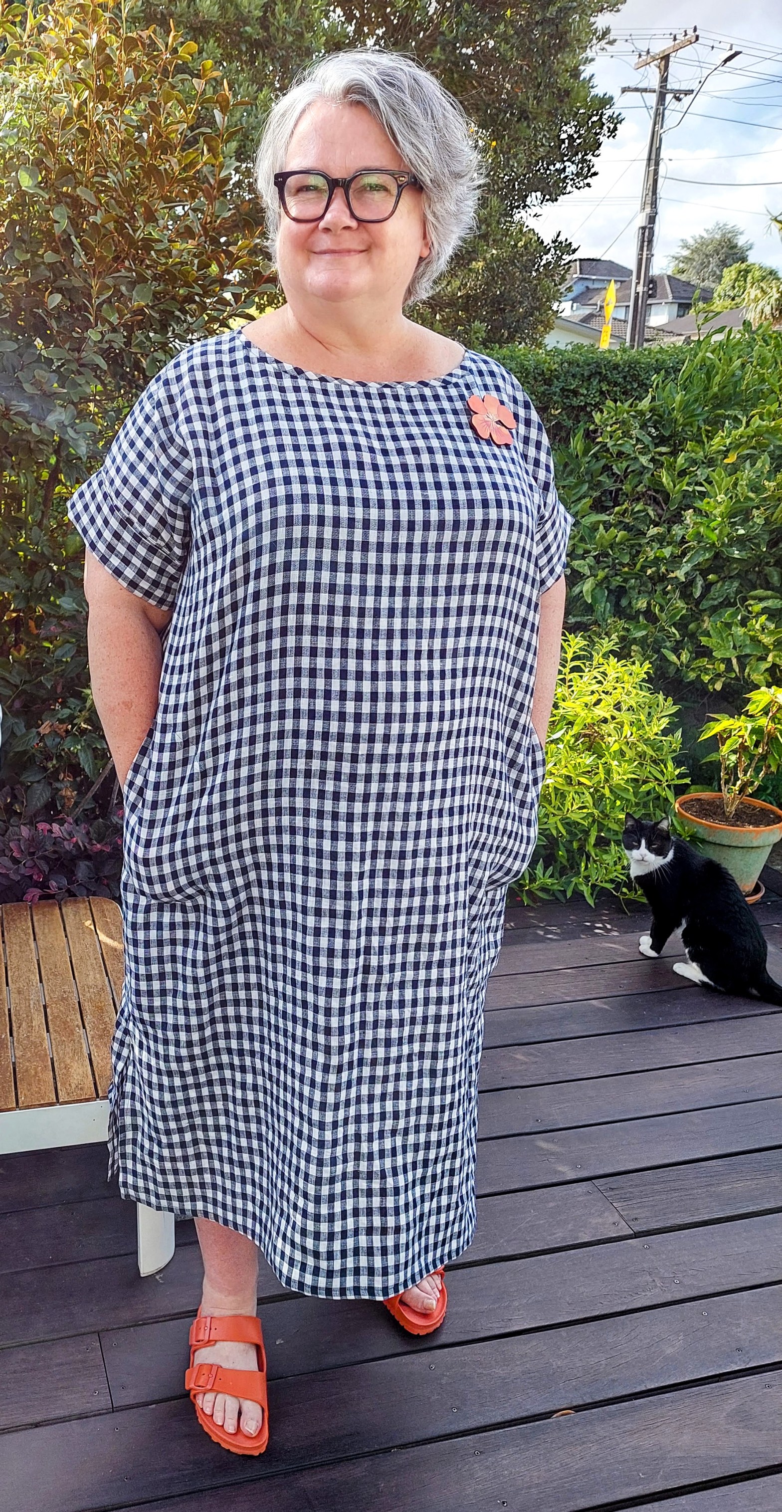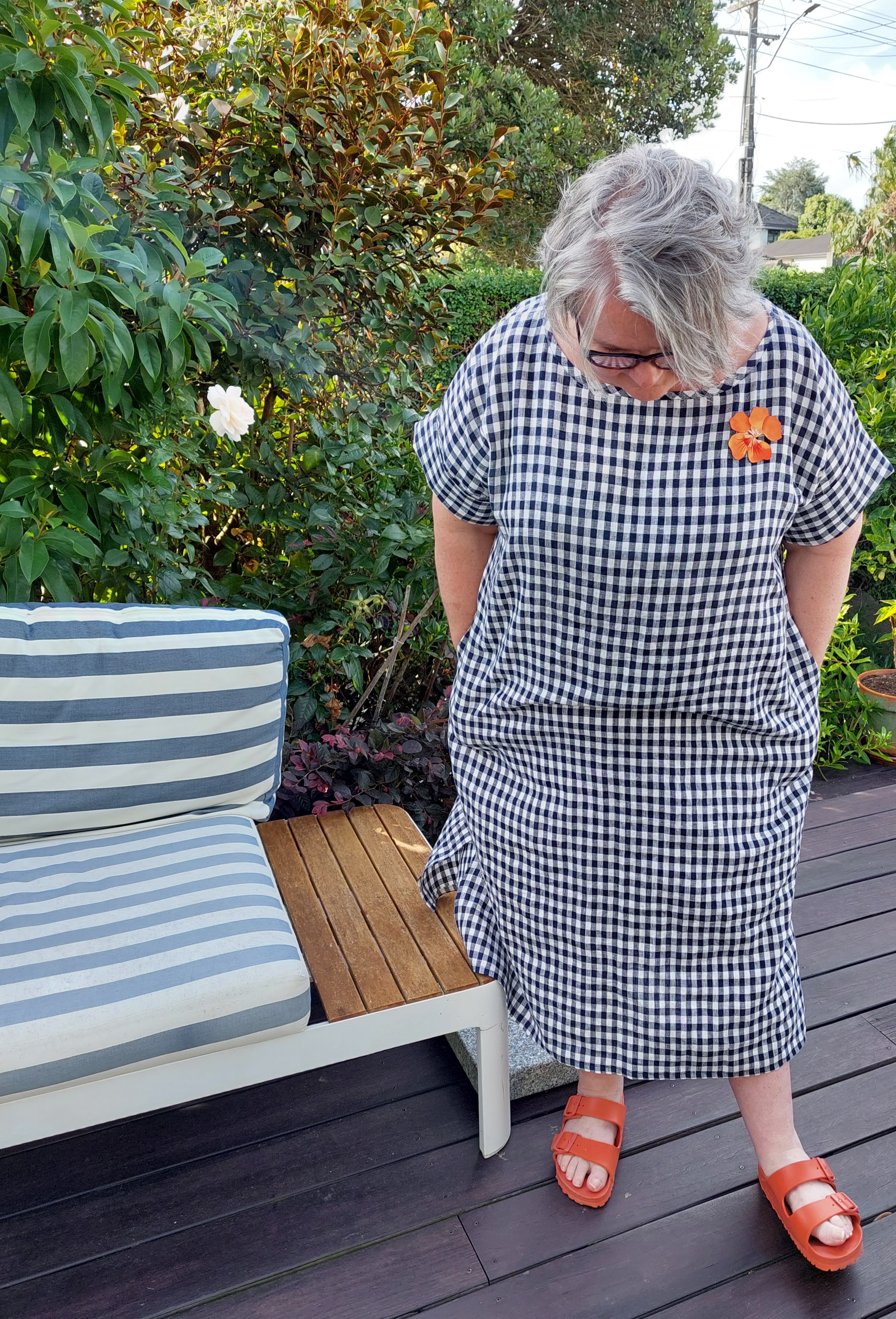 Version two is in a navy linen gingham from The Fabric Store (currently on sale) . This fabric is a delight to sew and wear, breezy but totally opaque , and perfect for any holiday spills (I wore a white tee shirt on my flight to Sri Lanka & two curries in was really questioning that particular life choice)*
