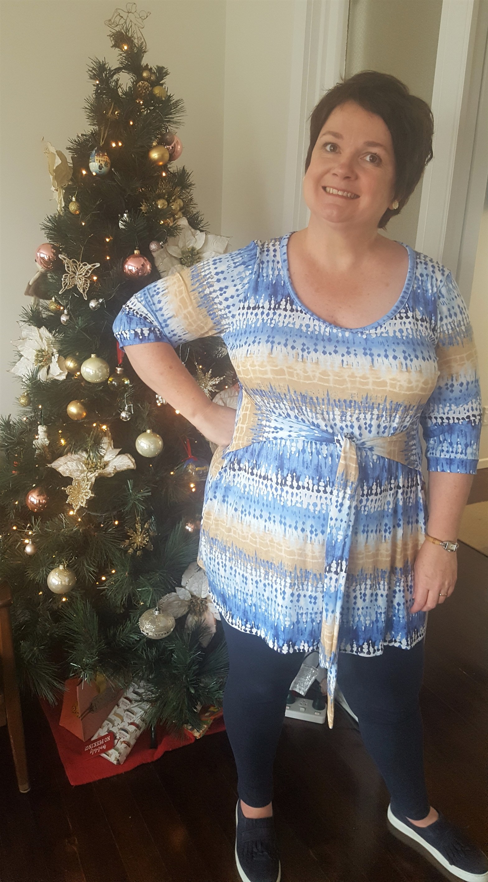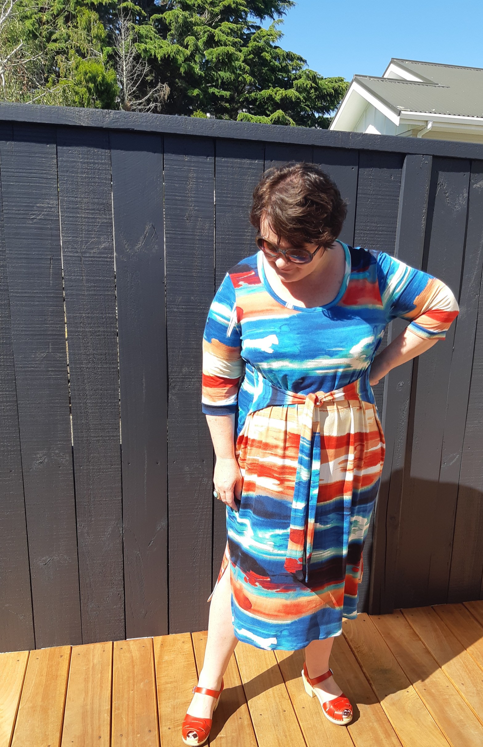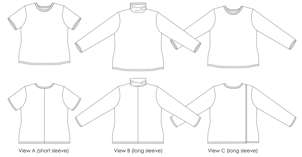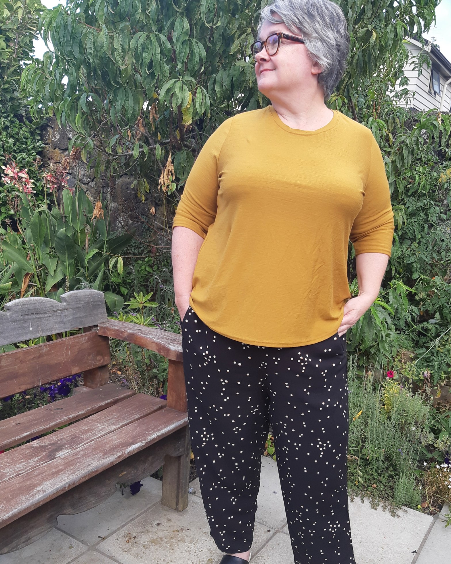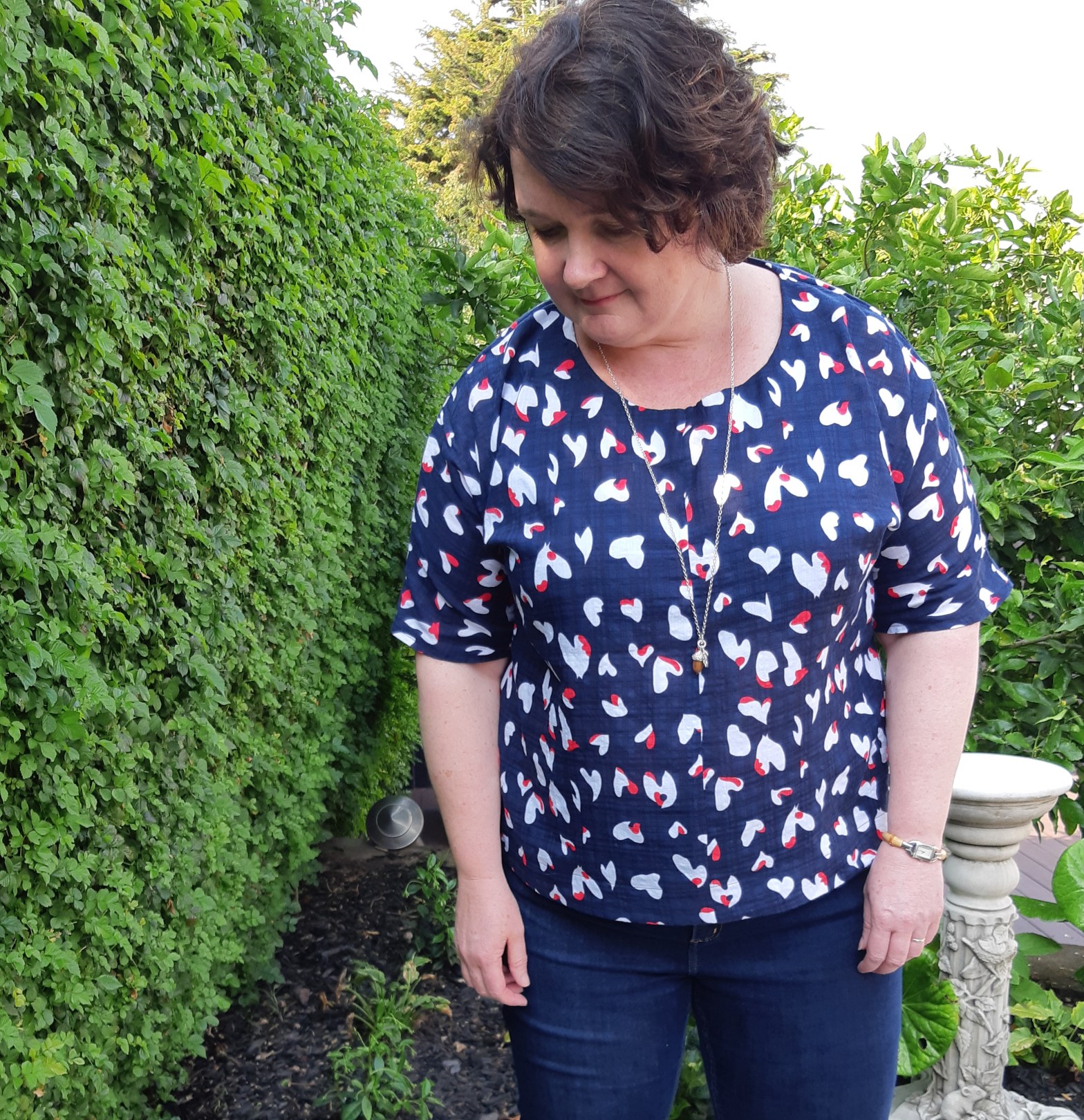 The pattern I started with is the Tarlee tee by Muna and Broad , a great versatile pattern I have made before . I really like the fit of this pattern, especially the curve over the back into the neckline, perfect for my terrible posture (I blame years of desk/computer work and an aversion to yoga)