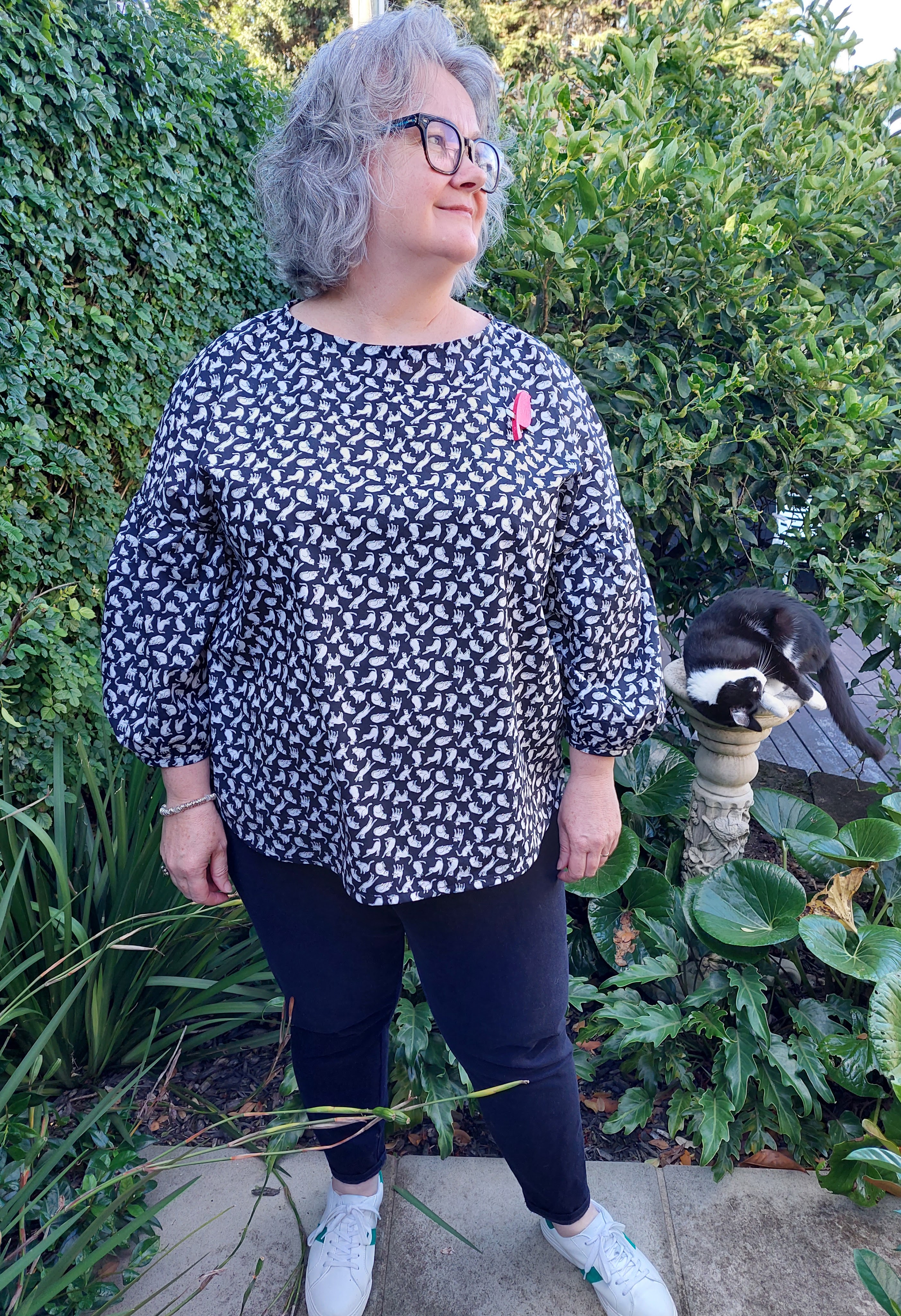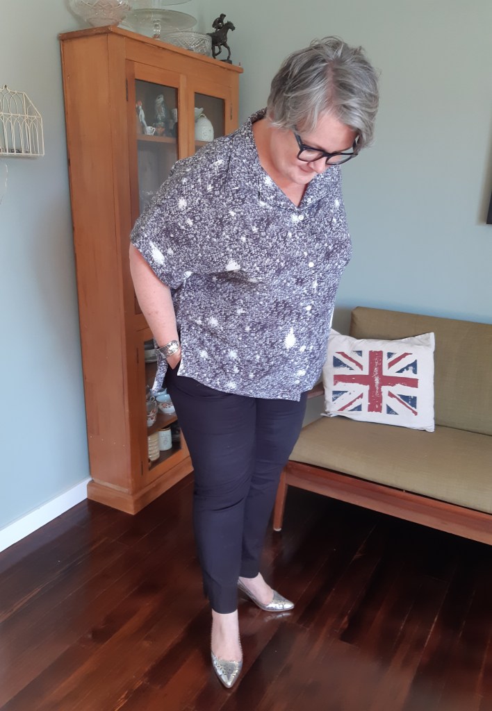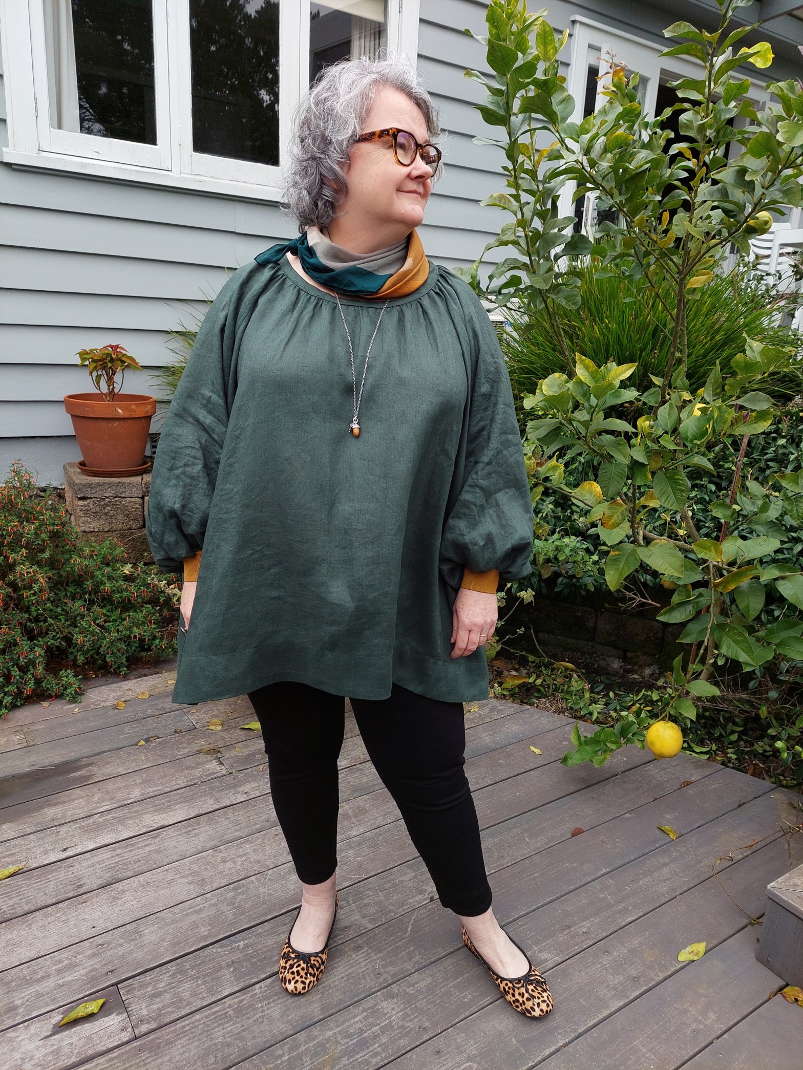 I really love this top. It’s comfortable to wear, swishes in a pleasing manner, does not care if I’ve had a rather indulgent lunch, it just swings on down! I went down one size which I’m happy with, next time I would gather the neckline a wee bit more so it sits slightly higher too