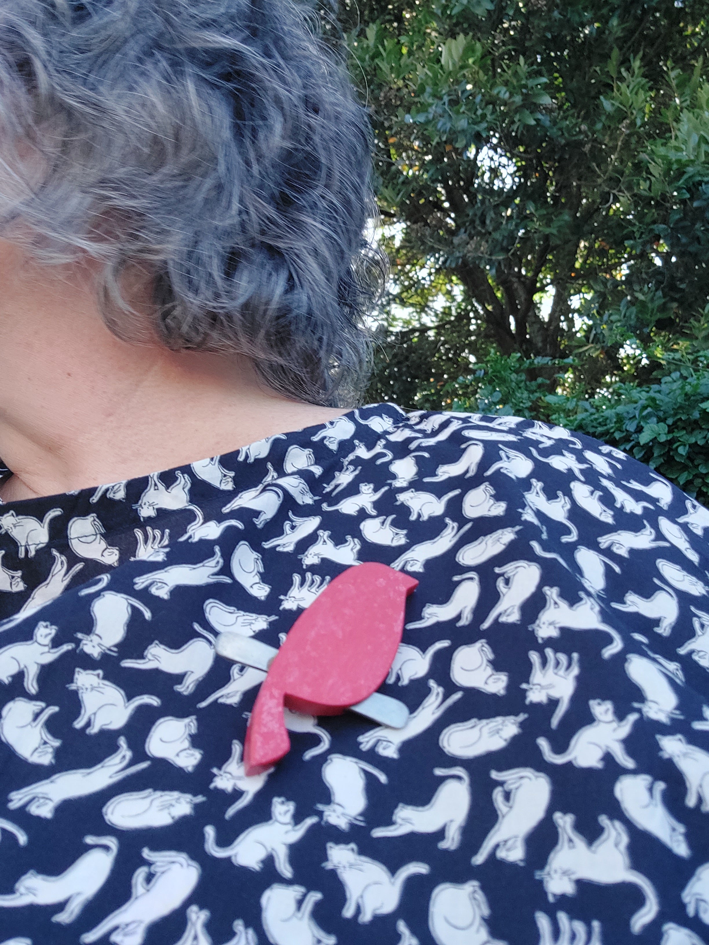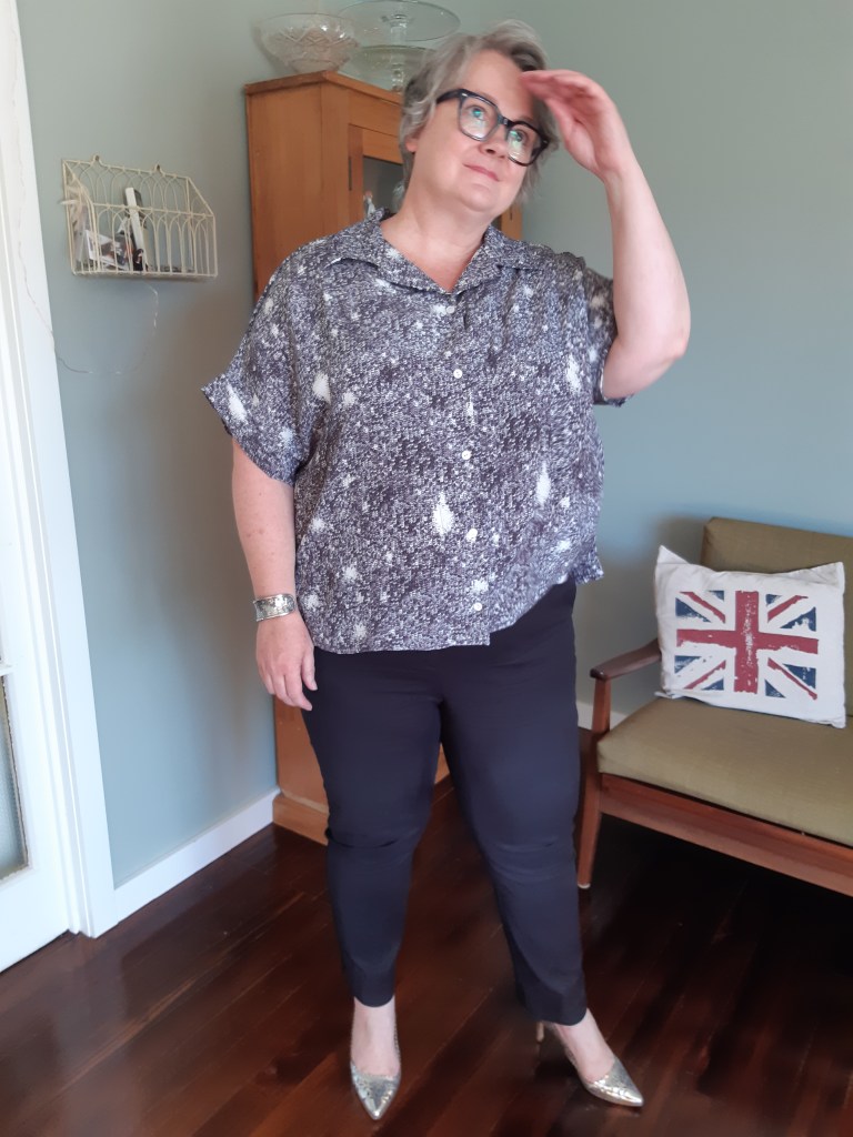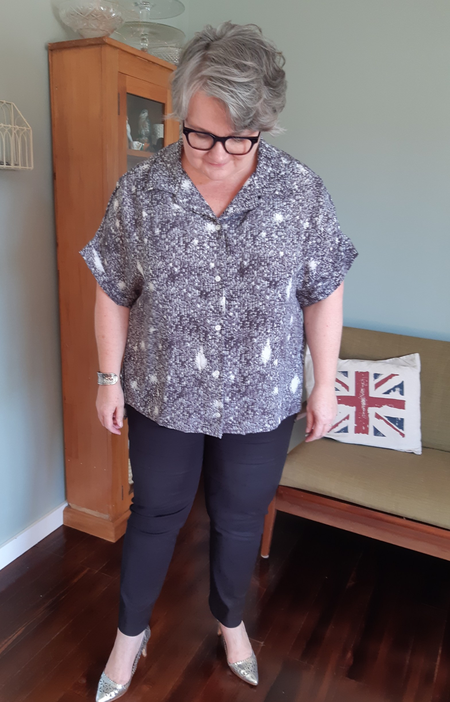 I really love this top. It’s comfortable to wear, swishes in a pleasing manner, does not care if I’ve had a rather indulgent lunch, it just swings on down! I went down one size which I’m happy with, next time I would gather the neckline a wee bit more so it sits slightly higher too